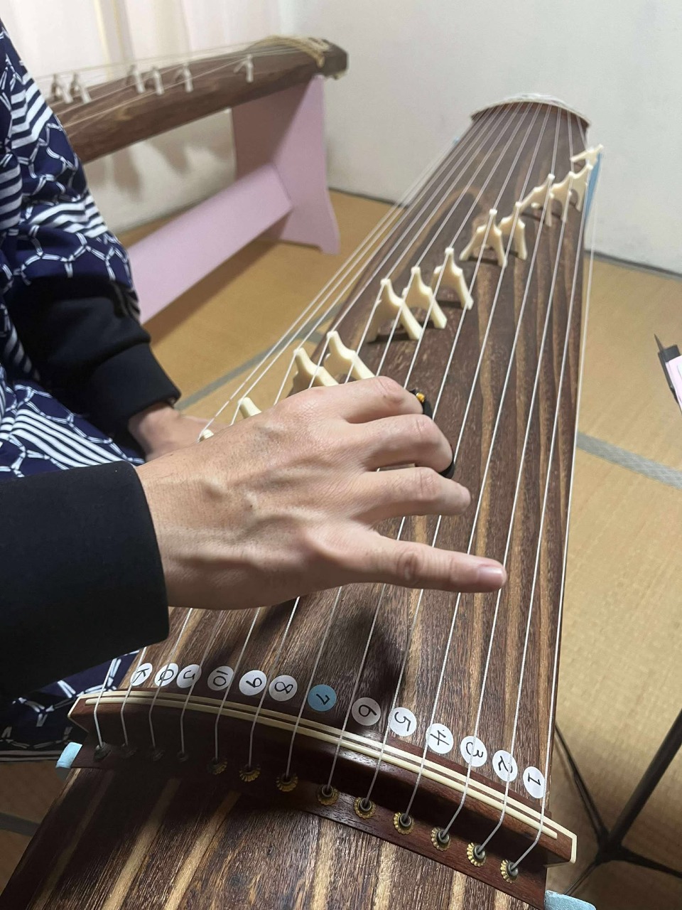 ・お琴は初めての方でも体験できるよう工夫しています。