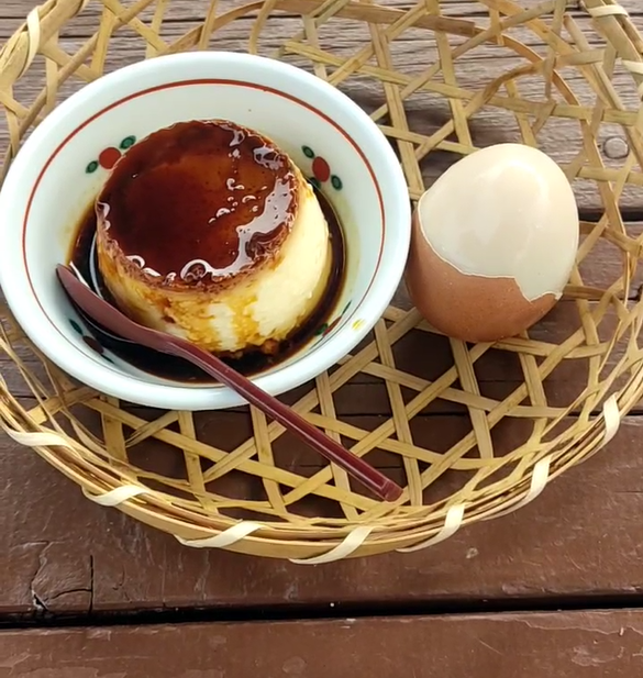 岡本屋:温泉の噴気で蒸しあげた温泉玉子と地獄蒸しプリンはとても有名です。別府で必ず食べるべき逸品です。サービスに含まれています。