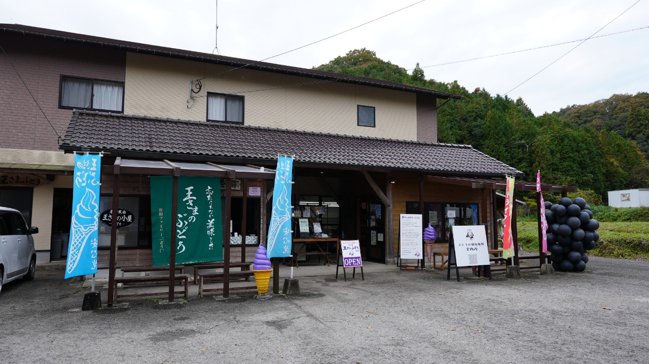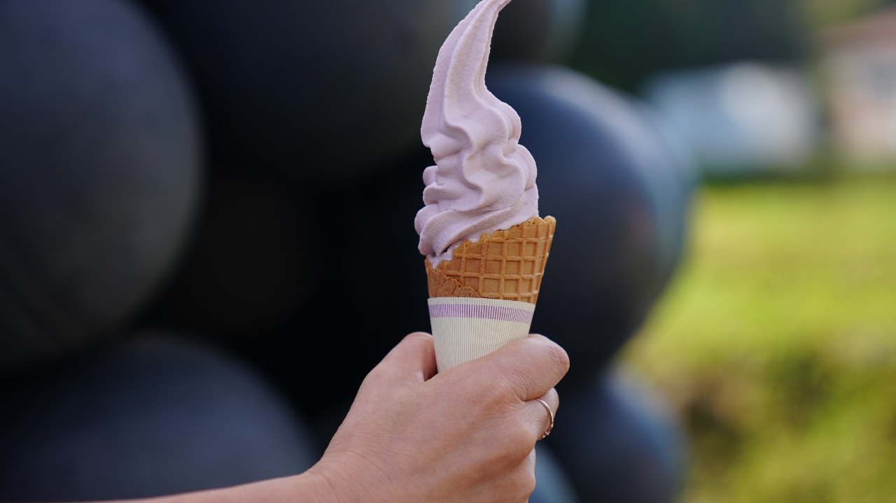 ・ぶどう直売所で大人気のぶどうソフトクリーム付
