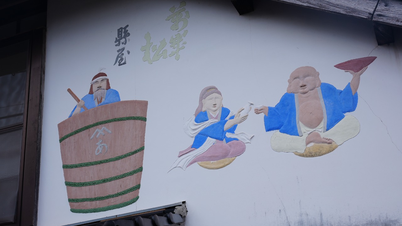 ・建物の立派な鏝絵(こてえ)。鏝絵は日本で一番安心院町に多く残っている歴史的建造物。